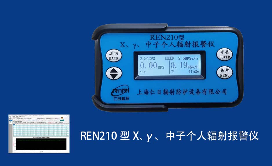 REN210型X、γ、中子個(gè)人輻射報(bào)警儀內(nèi)置SiPM和鋰玻璃晶體組成中子探測(cè)器儀器,采用反照率方式探測(cè)中子射線(xiàn),同時(shí)也能探測(cè)X、γ射線(xiàn)。因此它可同事監(jiān)檢測(cè)X、γ、中子三種射線(xiàn)。能顯示工作場(chǎng)所的劑量當(dāng)量率和累積劑量,更換電池時(shí),日期及累積數(shù)據(jù)能永久保存。可選配RenRiPersonal個(gè)人劑量管理軟件,該軟件可存儲(chǔ)多個(gè)人的歷史數(shù)據(jù),能記錄日累積、月累積、年累積、輻照時(shí)長(zhǎng)、計(jì)算平均劑量率、扣除或不扣除本底輻射,且以文字和圖譜的方式展現(xiàn)數(shù)據(jù)。廣泛應(yīng)用于環(huán)保、化工、水泥、煤礦、土木工程、石油、醫(yī)院、疾控、進(jìn)出口商檢、核電、加速器、機(jī)場(chǎng)、中子源庫(kù)和其他安檢、邊境控制海關(guān)檢測(cè)等領(lǐng)域中的工作人員進(jìn)行個(gè)人安全防護(hù)監(jiān)測(cè)及放射性提示。